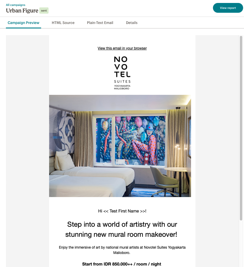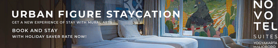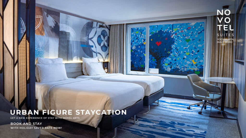 Urban Figure is one of the room offer campaigns from Novotel Suites Yogyakarta Malioboro. We have a total of 10 rooms that feature a wall view. We collaborated with international and national artists to transform the wall into a work of art. As a result, these rooms have been transformed from being less desirable to the most artistic and sought-after spaces in our hotel.